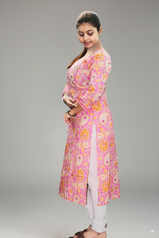 Baby Pink Cotton Kurti Sale