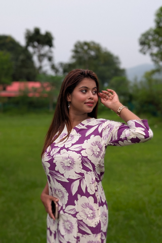 💜 Color: Rich purple with vibrant big floral print