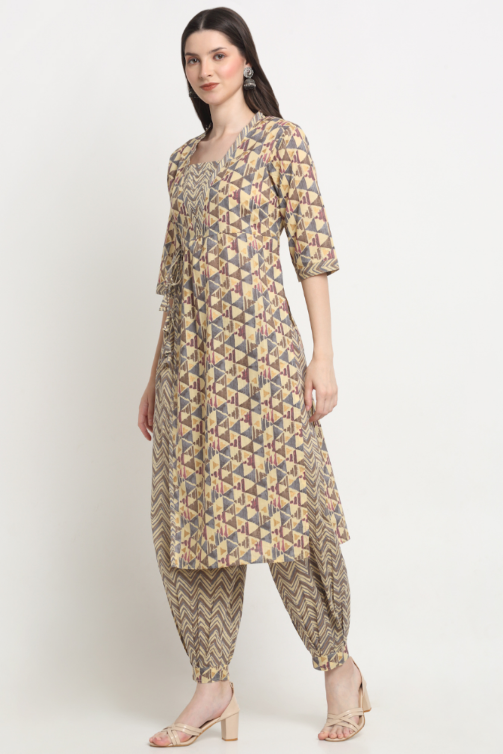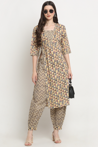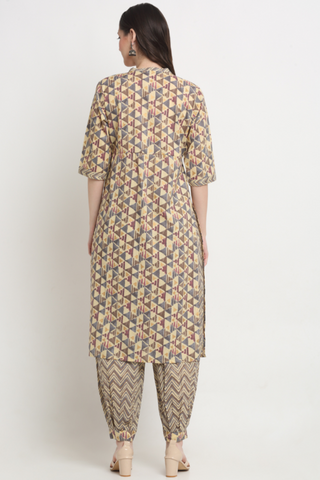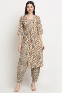 Embrace effortless elegance with this cotton kurta & Afghani pant set, designed for style and comfort in every step. Crafted from breathable, skin-friendly cotton, the kurta exudes timeless charm, while the flowy Afghani pants add a touch of bohemian grace. Perfect for casual outings, festive gatherings, or everyday wear, this set is your go-to for a relaxed yet sophisticated look. Feel the freedom of comfort, draped in elegance!